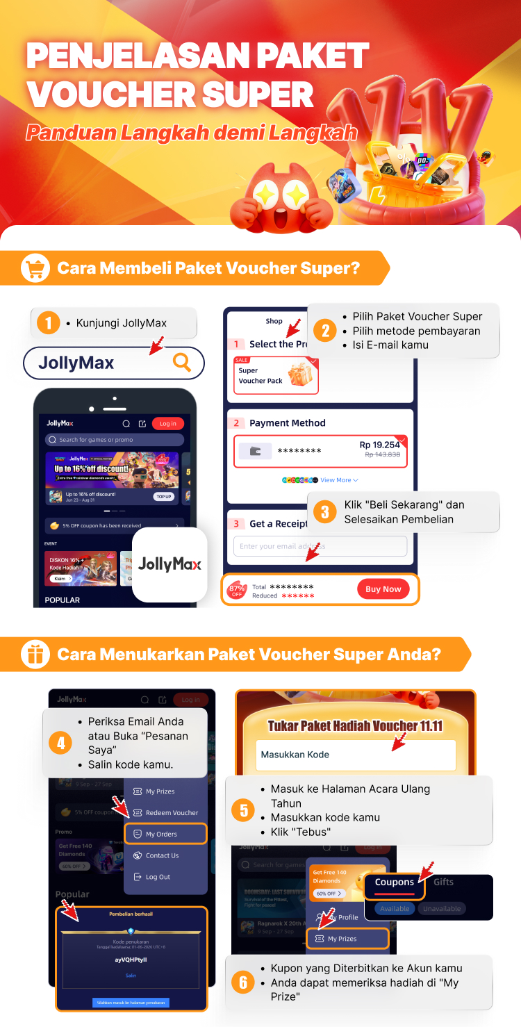 Tanpa batas pembelian! Semua kupon hanya berlaku untuk produk Direct Top-Up. Semakin banyak kamu beli, makin besar hematnya!