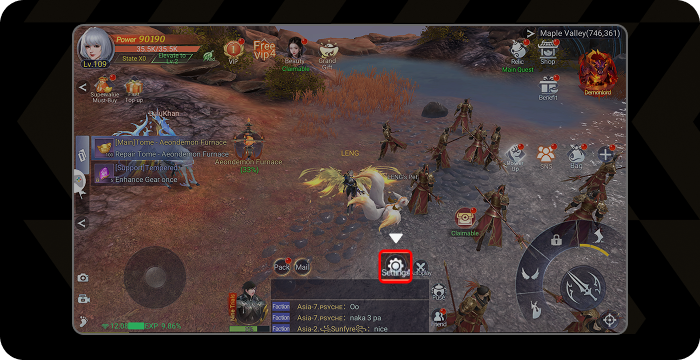 1. Login the game, In the upper right corner of the chat box. Tap "Setting".