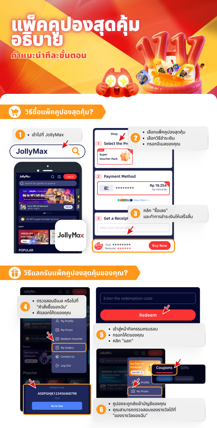 คูปองทั้งหมดสามารถใช้ได้กับสินค้าประเภท Direct Top-Up เท่านั้น