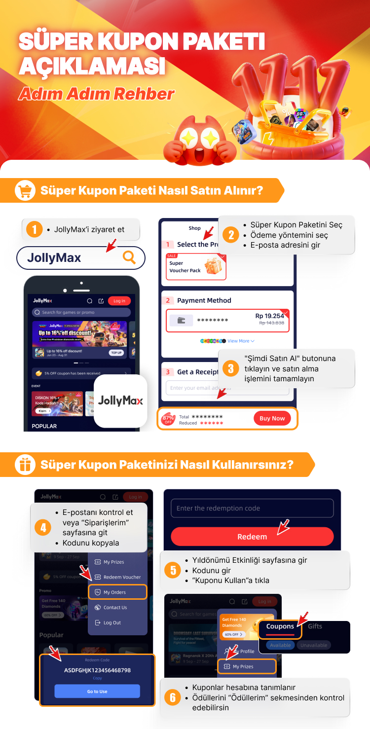 Satın alma limiti yok. Tüm kuponlar yalnızca Doğrudan Yükleme (Direct Top-Up) ürünlerinde kullanılabilir. Ne kadar çok alırsan, o kadar çok kazanırsın!